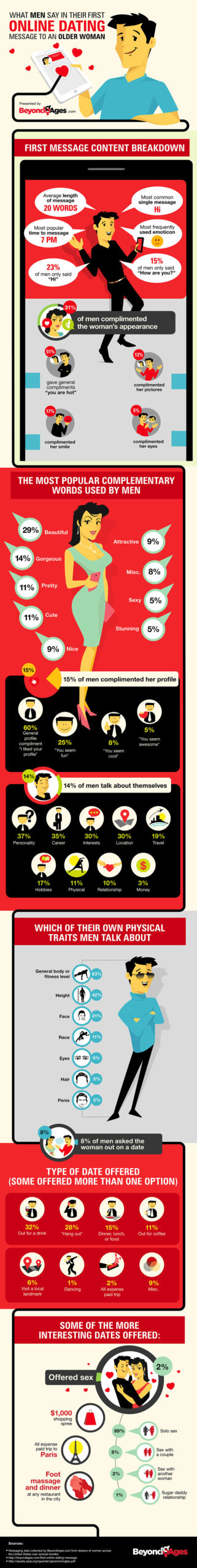 We analyzed thousands of messages from men across the country and created the infographic below to give you a peek into how other guys are doing it. Find out what everyone else is doing so you can stand out!