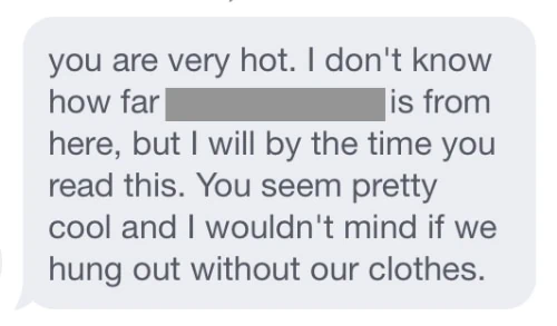 Next time, do your Google Maps search before sending a message, and maybe suggest the naked hang-out once you’ve gotten to know each other.
