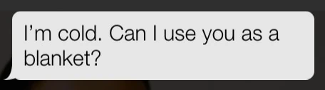 A cheeky metaphor that implies something romantic. However, it could also imply something extremely sinister. We’re not sure if he wants her as a blanket in a cute way, or in a “Silence of the Lambs” way.