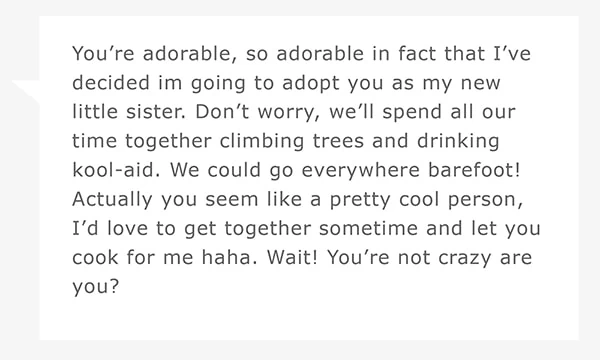 1. Why bother crafting a message based on their profile when you just copy and paste the lyrics of a dreary country song?