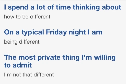 This prompt is your opportunity to stand out. Most guys usually write something boring like “I have this profile”. This guy went a bit too far against the grain.