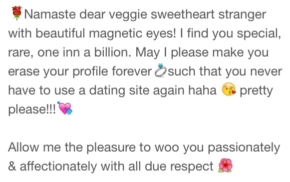 This guy is clearly a poet at heart. The proposal might have come a bit fast, but his main problem is this emoji situation is out of control. Probably best avoid asking “pretty please” to any potential dates too.