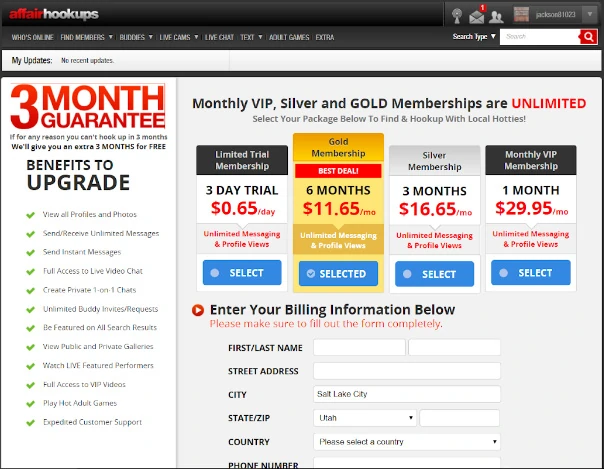 These are the Affair Hookups membership plans: