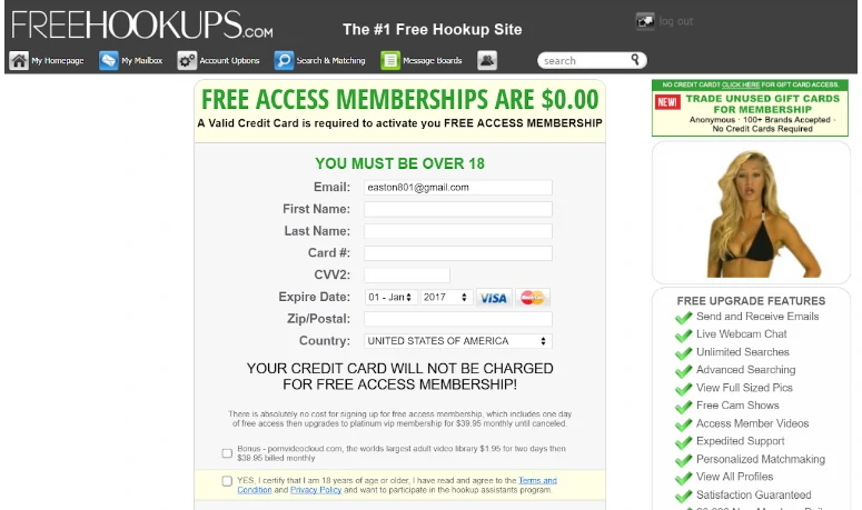Despite being called “Free Hookups”, the site only has a one-day free trial (which you can avail of if you give the site your credit card info). Otherwise, the monthly fee is $29.95.